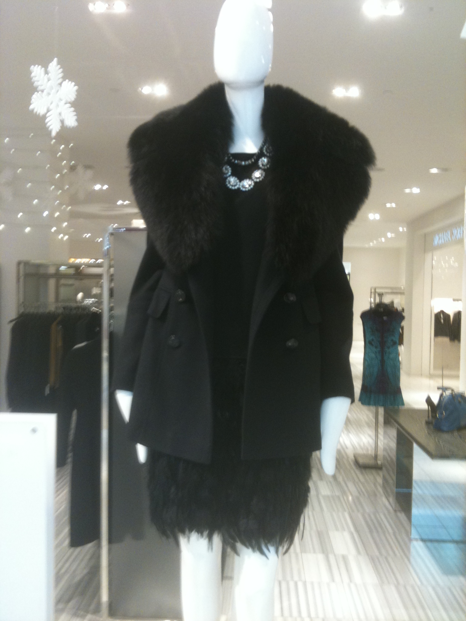 I saw this coat the other day at Holts and immediately had to take a picture. It’s Burberry and is – clearly – the best black wool coat ever! It’s chic, glamorous and super fancy. It has a huge black fur collar, which is removable (but why remove a collar like this?!). It’s an awesome length, double breasted and would look good with everything – jeans, a suit, a fancy dress, a tight pencil skirt with super high heels, etc. You would have this coat for so many years and never get sick of it. And because it’s Burberry, it would be really well made and last a long time.