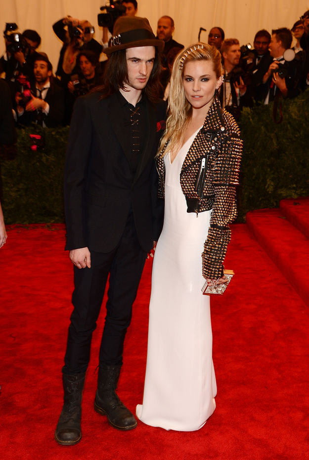 This is spot on considering the theme. This spiked leather jacket is unbelievable. And so good over a long white dress. Love her hair pinned up to the side and her choice of accessories too. This is cool. And this is Sienna.
