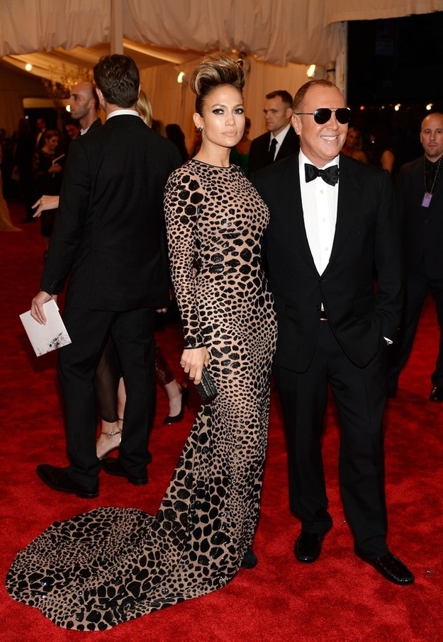 I like this sheer long sleeve animal print dress. A lot. It reminds me a bit of Rihanna’s long sleeve alligator Tom Ford dress at last year’s Met Gala. And although it’s not super punk, it’s still a little edgy for Jennifer Lopez. And she has the attitude and definitely the self confidence to pull this off. I think her hair works well for the event too.