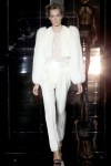 Ford’s spring presentation was super different from his elaborate and indulgent collection last fall. This was Tom back to being Tom and doing what he does best – crazy good looking and EXPENSIVE clothes. He has a unique aesthetic – luxurious, sexy and refined. The leathers used were unbelievable and are going to come at an extremely high cost. But that’s what we’ve come to expect from Ford. This time Tom went for more monochromatic colours and the tanned leather pieces that opened the show particularly stood out. The slightly shear and slouchy tops were super cool as were the incredible wool coats. And loved that he’s bringing back the turned up collars. While he showed some interesting and very sexy pieces made of fabric that resembled spider webs, he also showed some glamorous and super sexy suits (no one does a pencil skirt like Tom). These are clothes for the power players – women who are super successful, sexy and RICH. And we’re going to be seeing a lot of the fractured mirrored dresses and boots that closed the show. In fact, I can’t wait to see who the lucky ones will be who’ll get access to this collection first. Let the popularity game begin…