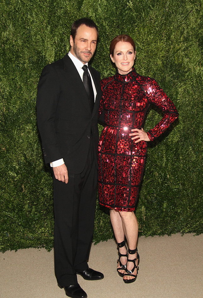 NEW YORK, NY – NOVEMBER 11: Designer Tom Ford and actress Julianne Moore attend CFDA and Vogue 2013 Fashion Fund Finalists Celebration at Spring Studios on November 11, 2013 in New York City. (Photo by Mireya Acierto/Getty Images)