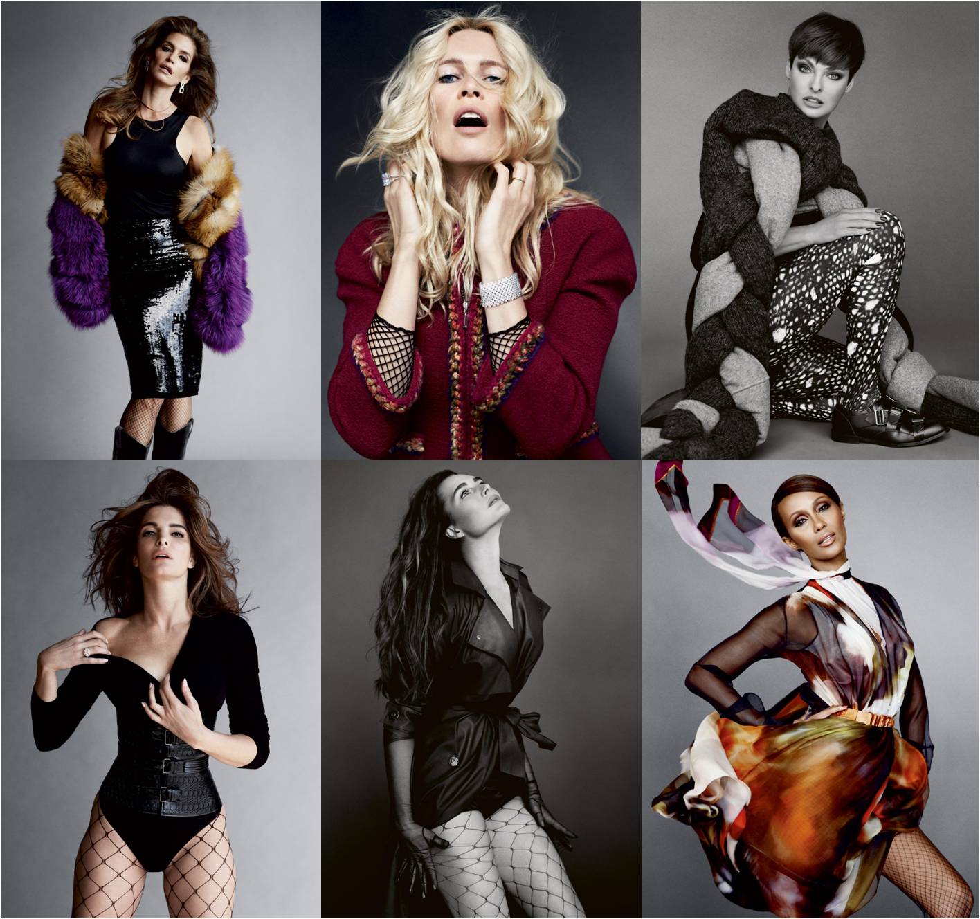 Eeeeek! Nothing excites me more than when the 90s supers show up again. And Harper’s Bazaar’s September issue is making it happen. Because my girls are back. The well respected fashion magazine asked super talented stylist Carine Roitfeld to select and style an awesome lineup of legendary faces for a portfolio titled “Icons” – and it’s fancy. Beauties featured in the 17-page piece include Lady Gaga, Linda Evangelista, Cindy Crawford (looking better than ever in Tom Ford and demonstrating that a sequin pencil skirt is a must for fall), Claudia Schiffer, Stephanie Seymour, Brook Shields, , Iman, Lauren Hutton, Lara Stone, Joan Smalls, Penelope Cruz and more.