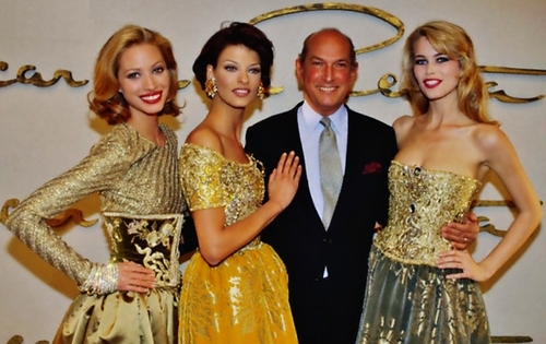 Oscar De La Renta with supermodels greats Christy Turlington, Linda Evangelista and Claudia Schiffer in the early 90s.