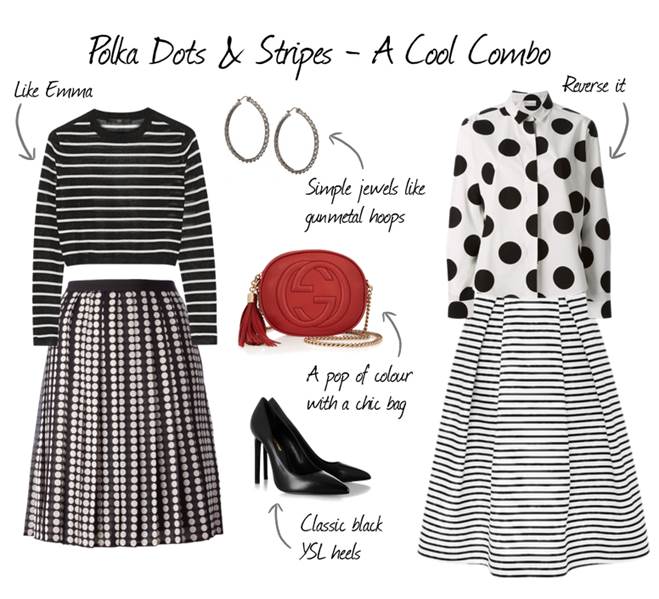 Wearing a striped black and white sequin jersey (which is so cool and you could wear a lot) with an embroidered polka dot tea-length skirt, Stone (and Michael Kors) show us how well mixing patterns can work, when done properly. And it can be tricky. But there’s something about stripes and polka dots that just work inherently well together. The two simple patterns were pretty much made for each other – they make for a surprisingly crisp combo and a great juxtaposition. To wear the two patterns together, it’s usually safest to go for a similar monochrome colour scheme, otherwise the look can get too complicated. But if you’re brave and want to shake it up a bit, you can always try to add colours into the mix as well. After all, it’s just fashion. And fashion should be fun.