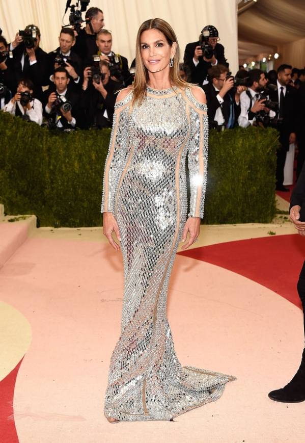 We saw a lot of the legendary supermodel is 2016 and she looked gorgeous and ageless in this mirrored curve-hugging dress with sheer panels. This is one of Crawford’s best red carpet looks ever. On a night where so many other stars and models wore silver gowns, the iconic supermodel stole the show and sparkled above all the rest (looking at you Kardashians). And it was cool she was Olivier Rousteing’s date after starring in the recent Balmain campaign with fellow supermodels Naomi Campbell and Claudia Schiffer earlier in the year.
